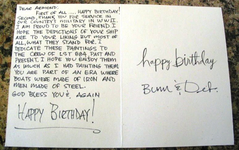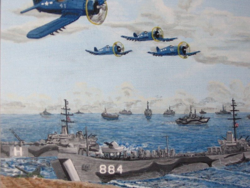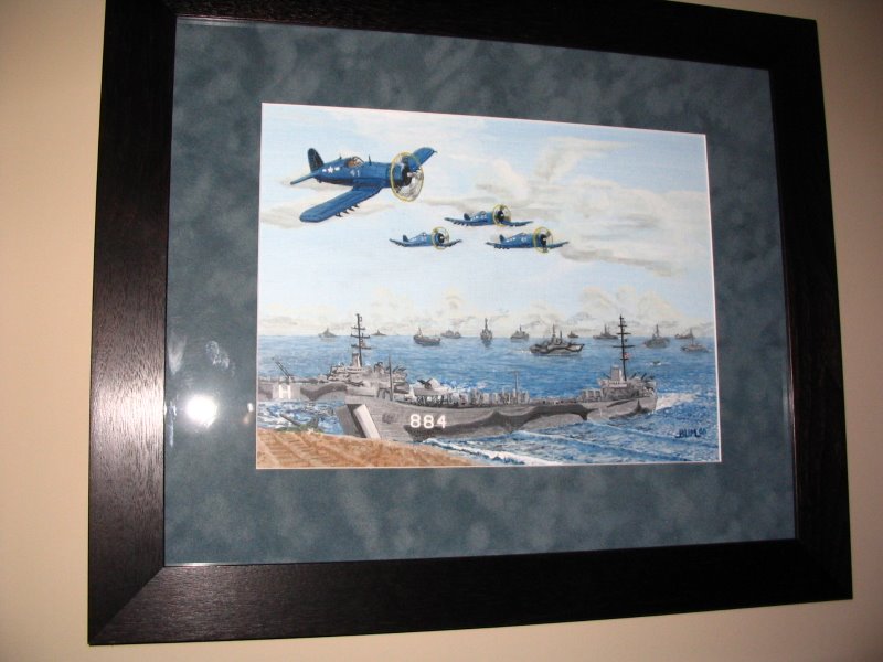 Armand writes; A family friend, who resides in N. Carolina (Lester "Bum" Duguay) a self taught artist, whose brother served in the Coast Guard during the Viet Nam era did this for me as a birthday gift, along with a note attached. A beautiful and thoughtful memento of the 884. [At] Iwo Jima Red Beach 2.